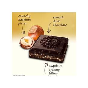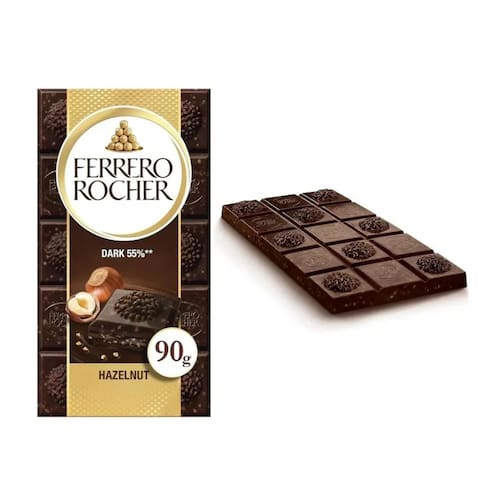 Marca: Ferrero Composição: açúcar, pasta de cacau, avelãs, óleo de palma, manteiga de cacau, cacau magro, soro de leite em pó, gordura, lecitina de soja, vanilina. Alergênicos: contém derivados de soja, lactose, avelãs; pode conter nozes, pecãs, pistache, castanha do Brasil e macadâmias. Origem: Polônia Peso: 90g