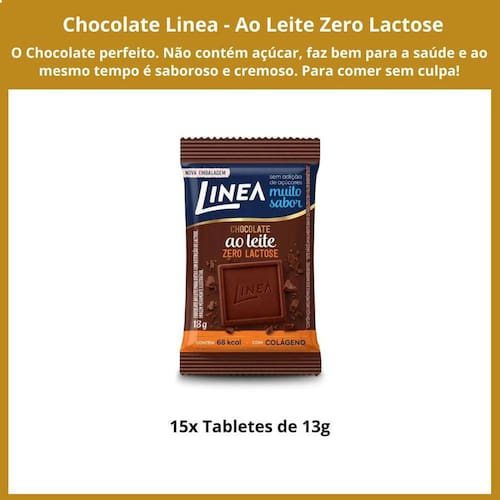 O Chocolate Diet Linea Zero Açúcar Sabor é perfeito. Não contém açúcar, faz bem para a saúde e ao mesmo tempo é saboroso e cremoso. Para comer sem culpaSobre o Chocolate Diet Linea Zero Açúcar- Faz bem para a saúde. Para comer sem culpa - Cremoso e delicioso. Chocolate de excelente qualidade.- Ótimo custo-benefício.- Contém colágeno que pode ajudar na melhora da pele.Conteúdo 15 barras de chocolate de 13gObservações Validade: 6-8 MesesFabricado no Brasil