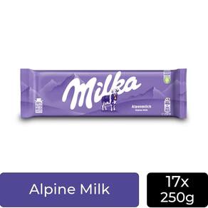 Chocolate milka alpine milk kit 17 barras de 250g A cremosidade inconfundível do leite dos alpes em tamanho família Deixe-se levar pela ternura e o sabor único do chocolate milka alpine milk, agora em uma generosa barra de 250g. Esta é a expressão máxima da suavidade, feita com um ingrediente especial: o leite 100% alpino, que confere uma cremosidade e um sabor que derretem na boca. A icônica embalagem lilás guarda uma experiência de sabor que atravessa gerações, perfeita para compartilhar com toda a família, para usar em suas receitas favoritas ou para garantir que sua pausa deliciosa dure muito mais. Por que o chocolate milka alpine milk é inesquecível Leite dos alpes: o segredo da sua cremosidade está no uso do autêntico leite da região alpina, que garante um sabor rico e uma textura aveludada. Tradição e qualidade: milka é uma marca com mais de 100 anos de história, sinônimo de qualidade e confiança no mundo dos chocolates. Sabor universal: um chocolate ao leite equilibrado, que agrada a todos os paladares, desde crianças a adultos. Tamanho para compartilhar: a barra de 250g é ideal para dividir com amigos e família ou para ter sempre à mão o seu chocolate favorito. Um gesto de carinho: a embalagem lilás e o sabor terno fazem de milka a escolha ideal para presentear e demonstrar afeto. O chocolate milka alpine milk é mais do que uma barra de chocolate, é um momento de puro prazer e ternura. Sinta a diferença que o leite dos alpes faz em cada pedacinho. Conteúdo: 17 barras de chocolate milka alpine milk Peso líquido total: 4250g Informações adicionais: Ingredientes: açúcar, de cacau, leite em pó desnatado, massa de cacau, soro de leite em pó, gordura de leite, pasta de avelã, emulsificante lecitina de soja , aroma. Cacau: 30% mínimo. Alérgicos: contém derivados de leite, avelãs e soja. Pode conter outras nozes e trigo. Contém lactose. Contém glúten. Condições de armazenamento: conservar em local fresco e seco. Fabricante: mondelz international. Marca: Não Informado