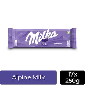 Chocolate milka alpine milk kit 17 barras de 250g A cremosidade inconfundível do leite dos alpes em tamanho família Deixe-se levar pela ternura e o sabor único do chocolate milka alpine milk, agora em uma generosa barra de 250g. Esta é a expressão máxima da suavidade, feita com um ingrediente especial: o leite 100% alpino, que confere uma cremosidade e um sabor que derretem na boca. A icônica embalagem lilás guarda uma experiência de sabor que atravessa gerações, perfeita para compartilhar com toda a família, para usar em suas receitas favoritas ou para garantir que sua pausa deliciosa dure muito mais. Por que o chocolate milka alpine milk é inesquecível Leite dos alpes: o segredo da sua cremosidade está no uso do autêntico leite da região alpina, que garante um sabor rico e uma textura aveludada. Tradição e qualidade: milka é uma marca com mais de 100 anos de história, sinônimo de qualidade e confiança no mundo dos chocolates. Sabor universal: um chocolate ao leite equilibrado, que agrada a todos os paladares, desde crianças a adultos. Tamanho para compartilhar: a barra de 250g é ideal para dividir com amigos e família ou para ter sempre à mão o seu chocolate favorito. Um gesto de carinho: a embalagem lilás e o sabor terno fazem de milka a escolha ideal para presentear e demonstrar afeto. O chocolate milka alpine milk é mais do que uma barra de chocolate, é um momento de puro prazer e ternura. Sinta a diferença que o leite dos alpes faz em cada pedacinho. Conteúdo: 17 barras de chocolate milka alpine milk Peso líquido total: 4250g Informações adicionais: Ingredientes: açúcar, de cacau, leite em pó desnatado, massa de cacau, soro de leite em pó, gordura de leite, pasta de avelã, emulsificante lecitina de soja , aroma. Cacau: 30% mínimo. Alérgicos: contém derivados de leite, avelãs e soja. Pode conter outras nozes e trigo. Contém lactose. Contém glúten. Condições de armazenamento: conservar em local fresco e seco. Fabricante: mondelz international. Marca: Não Informado Ean: 7908320929830