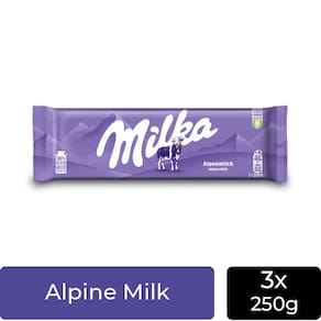 Chocolate milka alpine milk kit 3 barras de 250g A cremosidade inconfundível do leite dos alpes em tamanho família Deixe-se levar pela ternura e o sabor único do chocolate milka alpine milk, agora em uma generosa barra de 250g. Esta é a expressão máxima da suavidade, feita com um ingrediente especial: o leite 100% alpino, que confere uma cremosidade e um sabor que derretem na boca. A icônica embalagem lilás guarda uma experiência de sabor que atravessa gerações, perfeita para compartilhar com toda a família, para usar em suas receitas favoritas ou para garantir que sua pausa deliciosa dure muito mais. Por que o chocolate milka alpine milk é inesquecível Leite dos alpes: o segredo da sua cremosidade está no uso do autêntico leite da região alpina, que garante um sabor rico e uma textura aveludada. Tradição e qualidade: milka é uma marca com mais de 100 anos de história, sinônimo de qualidade e confiança no mundo dos chocolates. Sabor universal: um chocolate ao leite equilibrado, que agrada a todos os paladares, desde crianças a adultos. Tamanho para compartilhar: a barra de 250g é ideal para dividir com amigos e família ou para ter sempre à mão o seu chocolate favorito. Um gesto de carinho: a embalagem lilás e o sabor terno fazem de milka a escolha ideal para presentear e demonstrar afeto. O chocolate milka alpine milk é mais do que uma barra de chocolate, é um momento de puro prazer e ternura. Sinta a diferença que o leite dos alpes faz em cada pedacinho. Conteúdo: 3 barras de chocolate milka alpine milk Peso líquido total: 750g Informações adicionais: Ingredientes: açúcar, de cacau, leite em pó desnatado, massa de cacau, soro de leite em pó, gordura de leite, pasta de avelã, emulsificante lecitina de soja , aroma. Cacau: 30% mínimo. Alérgicos: contém derivados de leite, avelãs e soja. Pode conter outras nozes e trigo. Contém lactose. Contém glúten. Condições de armazenamento: conservar em local fresco e seco. Fabricante: mondelz international. Marca: Não Informado Ean: 7908320929809