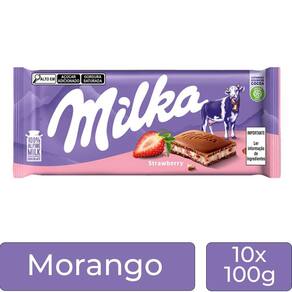 Chocolate Milka Morango Barra Kit Com 10 Unidades De 100G