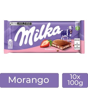 Chocolate Milka Morango Barra Kit Com 10 Unidades De 100G