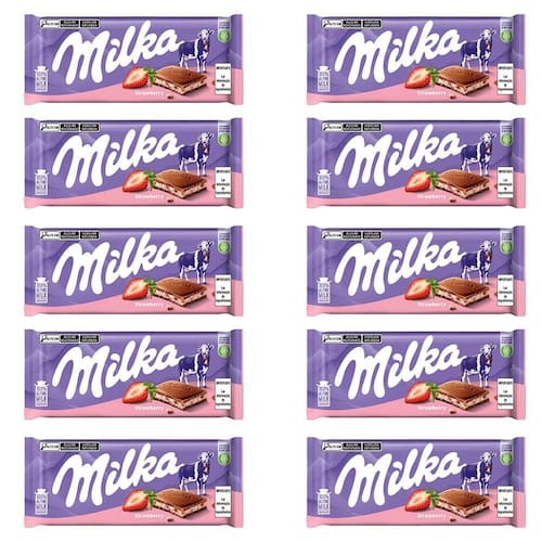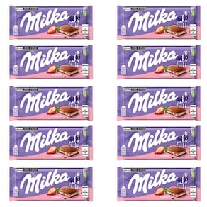 Chocolate Milka Morango Barra Kit Com 10 Unidades De 100G