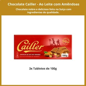 Sobre o Chocolate Cailler - Produto suíço referência em chocolate. - Cremoso e delicioso. - Feito com ingredientes de alta qualidade. - Perfeito para presentear ou para degustar.