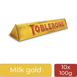 Chocolate Toblerone Milk Gold Kit 10 Unidades de 100g. O Clássico Dourado: Chocolate Toblerone Milk Gold - 100g Experimente a tradição e o sabor inconfundível do Chocolate Toblerone Milk Gold - 100g. Este ícone suíço, com seu formato triangular que evoca os majestosos Alpes, oferece uma experiência de chocolate ao leite rica e cremosa, perfeitamente combinada com pedacinhos de e o característico nougat de amêndoas. É a escolha perfeita para quem busca um clássico atemporal que agrada a todos os paladares. Por Que o Toblerone Milk Gold é Tão Amado Sabor Clássico e Cremoso: O chocolate ao leite de alta qualidade se derrete na boca, proporcionando uma sensação de puro prazer e nostalgia. Toque de e Nougat: A combinação perfeita de e nougat de amêndoas adiciona uma textura mastigável e um sabor adocicado que complementa o chocolate ao leite. Formato Icônico: Seu design triangular não é apenas estético, mas também facilita a quebra dos pedaços, tornando a experiência ainda mais divertida. Tradição Suíça: Produzido na Suíça, berço dos melhores chocolates do mundo, garantindo um padrão de excelência e pureza. Porção Ideal: A barra de 100g é perfeita para um momento de indulgência individual, para levar na bolsa ou para presentear. Toblerone: Uma Lenda em Cada Triângulo Desde sua criação, o Toblerone tem sido um símbolo de qualidade e inovação. A versão Milk Gold é a representação mais pura do legado da marca, oferecendo um chocolate que transcende gerações. Cada barra é um convite a explorar a rica história da confeitaria suíça, feita para ser apreciada e compartilhada. Conteúdo: 10 barras de Chocolate Toblerone Milk Gold. Peso Líquido Total: 1000g 00g Informações Adicionais: Ingredientes: Açúcar, leite em pó integral, de cacau, massa de cacau, 3% , gordura de desidratada, amêndoas 1,6% , açúcar invertido, clara de ovo em pó, emulsificante lecitina de soja, aromatizante. Cacau: 28% mínimo no chocolate ao leite. Alérgicos: Contém leite, amêndoa, derivados de soja e ovo. Pode conter outras nozes. Contém lactose. Não contém glúten. Condições de Armazenamento: Conservar em local fresco, seco e inodoro, longe da luz solar direta. Validade: 12 meses após a data de fabricação. Fabricante: Mondelez International.