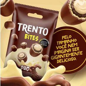 Chocolate Trento Bites Duo Chocolate Branco e ao Leite Muito mais sabor em cada mordida! Trento Bites Duo é um wafer recheado sabor baunilha coberto com chocolate branco e chocolate ao leite. Todo o s