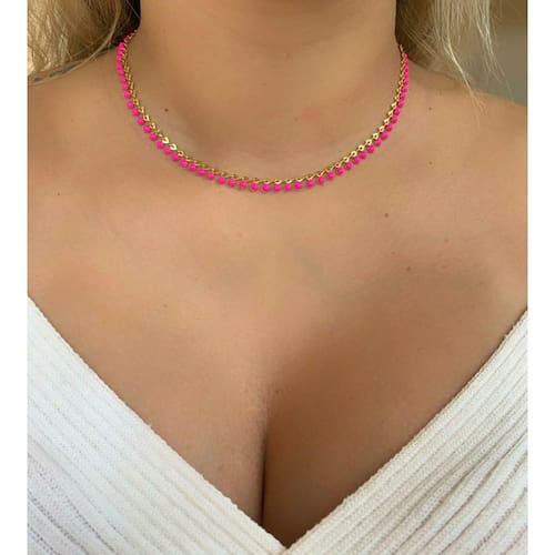 Choker Resina Pink Folheado a Oro