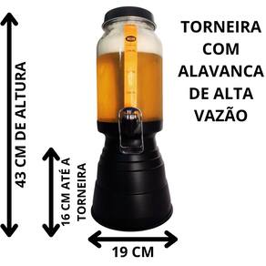 Torre de Chopp - Altura: 43 centímetros - Largura Total (Base): 19 centímetros - Material do Recipiente: Vidro - Material Tampa, Base e porta gelo : Alumínio