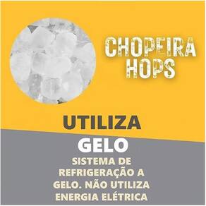 Chopp gelado em 01 minuto Compacta, de uso doméstico Design moderno Não utiliza energia elétrica Capacidade do reservatório: 2,8 litros Volume de chopp/hora: 10 litros Torneira tipo italiana, com bico controlador de vazão Serpentina em alumínio 3/8 8 metros de comprimento Sistema de refrigeração à gelo, utiliza 1,5kg de cubos de gelo; Duração do gelo: mínimo de 2 horas em temperatura ambiente; Pressão manual: até 30 psi ou 1 bar Isolação térmica; Abastecida por cerveja de sua preferência; Temperatura do chopp: 2,5 c a 6,0 c; Pés niveladores; Altura da torneira ideal para copos grandes; Material plástico átoxico; Resistente; Normas abnt; Produto com patente requerida