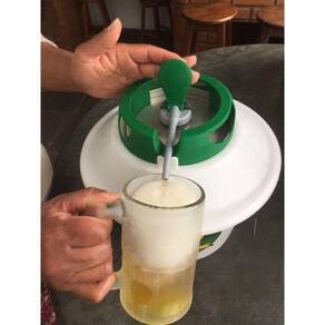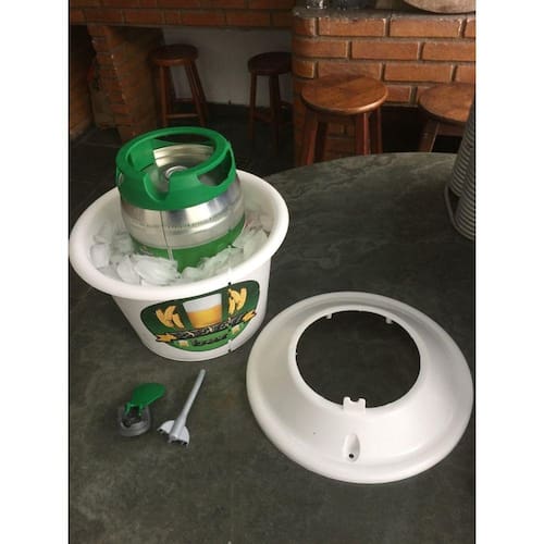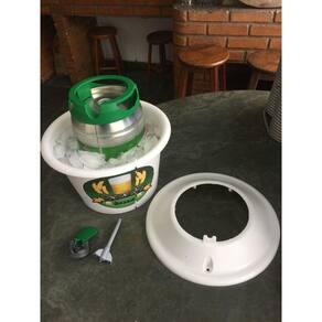 Chopeira Portátil TERMICA para Barril de 5 Litros Verde para Praia, Campo, Churrasqueira, Barco, Bar, e Sitio. Atenção: O anúncio é apenas da Chopeira, o Barril deverá ser comprado em Redes de Supermercados, Lojas de Postos, Adega, Distribuidora de Bebidas, entre outros;O produto é apenas com a logo Beer Bar;EspecificaçãoModelo: Beer BarCor: Branca Material: Plastico Branco e Verde, sendo Atóxico, 1 Balde e uma Tampa, Capacidade para Barril de 5 Litros Duração do Gelo no mínimo mantém 4 horas o Chopp Gelado Tipo de Gelo Usado Cubo ou Moído. Medidas: Redondo de 30 cm x Altura de 28 cm Peso 0,50 g Marca: Bier Bar