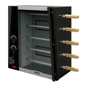 Chrglp assador rotativo de 5 espetos a gas glp Churrasqueira rotativa 5 espetos: Esta churrasqueira e a revolução do churrasco, sem fumaca, sem sujeira e com um sabor ainda melhor que o churrasco a carvao. Chega de apanhar para acender o fogo, com esta churrasqueira voce apenas precisa apertar um botao e pronto, o fogo ja esta aceso.