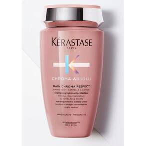 Bain Chroma Respect é um shampoo suave hidratante. A textura em gel creme opaca hidrata profundamente e cuida da fibra, respeitando e preservando o cabelo do desbotamento da cor.