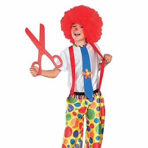 O traje infantil Chuckles King inclui macacão de bolinhas multicolorido.