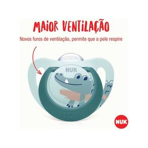 A chupeta NUK Star possui furos de ventilação com novo design para permitir maior circulação de ar. Sua argola é ideal para anexar o prendedor de chupeta, seu bico é tamanho 18m+ e ela é totalmente livre de BPA.