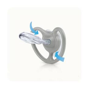 A Chupeta NUK possui design do escudo em 3D leve e arejado. Seu bico em silicone 35% mais fino e 45% e estreito. Possui um estojo protetor que pode ser utilizado no micro-ondas para higienização da chupeta e também para o transporte.