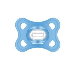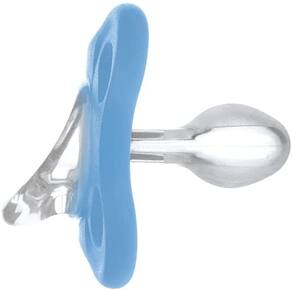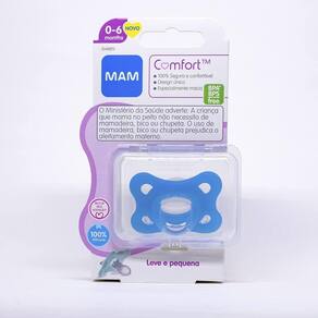 Super leve, a MAM Comfort é 32% mais leve que outras chupetas de silicone¹, seu bico simétrico com textura SkinSoft tem 94% de aceitação* é a menor de todas as chupetas MAM.