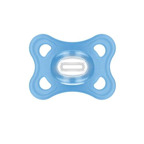 Design 100% silicone - especialmente higiênico, durável e seguroParticularmente leve - 32% mais leve¹ do que outras chupetas de siliconeBico extra pequeno e simétrico em Silicone SkinSoft de fácil aceitação*Alça em silicone compatível com os prendedores de chupetas MAMAcompanha estojo para esterilização e transporteCE-PUR/IQB 000265 NBR 10334 – OCP 006