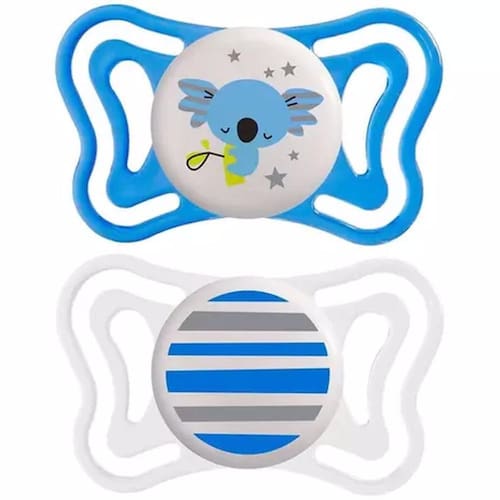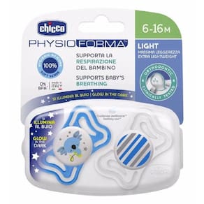 Chupeta com exclusivo bico Physio feito 100% de silicone que auxilia a respiração por meio de um relevo que auxilia a posição fisiológica da língua no local correto, liberando as vias respiratórias. Sua curvatura lateral distribui uniformemente a pressão da língua no palato para sua formação correta, além de possuir uma forma fina, côncava e que aponta para cima permitindo o encaixe natural da língua. A chupeta, ainda, brilha no escuro. O case que acompanha a chupeta é esterilizável e acomoda 2 chupetas