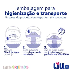 A Chupetas Little Friends Lillo possui bico em silicone macio e flexível, foi desenvolvido em formato simétrico que possibilita o uso em qualquer posição, sua base fina permite que o bico fique mais próximo aos lábios da criança, proporcionando maior conforto e fácil adaptação.