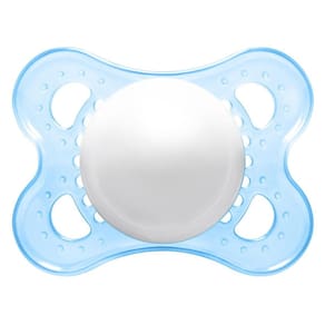 Chupeta 0 - 6 Meses Azul - Mam A Chupeta 0 - 6 Meses Azul - Mam foi desenvolvida pensando no máximo conforto e proteção para a pele sensível do bebê. Com elementos de design patenteados, essa chupeta possui silicone SkinSoft, que é macio, possui superfície texturizada e sedosa, sendo comprovadamente aceita por 94% das crianças. Além disso, a Chupeta 0 - 6 Meses Azul - Mam possui furos de ventilação que ajudam a evitar irritações na pele. Seu disco tem formato côncavo, grandes furos de ventilação e delicadas saliências internas. Já o botão é simples e fácil de pegar, facilitando a fixação ao prendedor de chupetas da MAM. Com medidas de 4 cm de altura, 5,3 cm de largura e 4 cm de comprimento, essa chupeta é leve, pesando apenas 20 g. A embalagem tem peso de 100 g e medidas de 8 cm de altura, 19 cm de largura e 17 cm de comprimento. É importante ressaltar que esse produto somente deve ser Utilizado na alimentação de crianças menores de 1 ano de idade com indicação expressa de médico ou nutricionista. O aleitamento materno é fundamental para evitar infecções e alergias, além de fortalecer o vínculo mãe-filho. A MAM é uma marca que atua desde 1976 desenvolvendo produtos para bebês e crianças, sempre visando o seu desenvolvimento e facilitando o dia a dia dos pais. Garanta o máximo de conforto e proteção para o seu bebê com a Chupeta 0 - 6 Meses Azul - Mam.