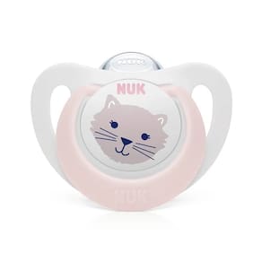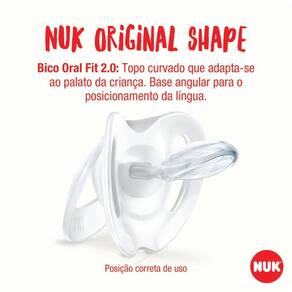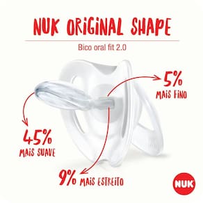 Exclusiva e única a Chupeta NUK Star possui formato que contorna o rosto do bebê de maneira suave sem cobrir o nariz do pequeno facilitando sua respiração. Seu bico em silicone possui formato assimétrico NUK Oral Fit 2.0 ou seja, 35% mais fino e 45% mais suave, além de ser mais macio e estreito. Se encaixa perfeitamente na boca proporcionando maior conforto nos movimentos naturais de sucção em cada fase do crescimento do bebê. A chupeta NUK Star possui furos de ventilação com novo design para permitir maior circulação de ar e proteger a pele sensível da criança Sua argola é ideal para anexar o prendedor de chupeta, além disso, a criança pode utilizá la para coçar a gengiva. A chupeta é livre de BPA Recomendado para crianças de 0 a 6 meses.
