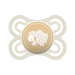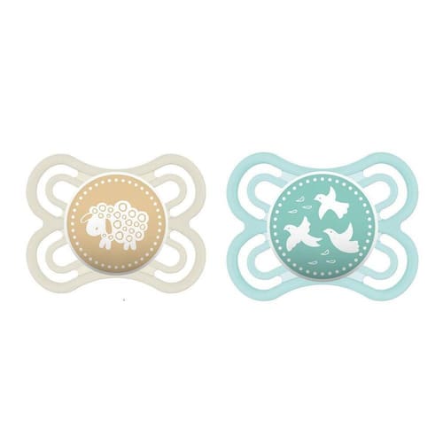 Disco: Formato côncavo. Grandes furos de ventilação e delicadas saliências internas. Botão: Simples e fácil de pegar. Fácil de se fixar ao prendedor de chupetas da MAM. Design MAM: Formato simétrico para um posicionamento sempre correto de uso.