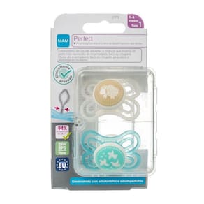 Clinicamente comprovado: um estudo longitudinal confirma que MAM Perfect minimiza o risco de desalinhamento dos dentes em relação a uma chupeta convencional. Base extra fina e flexível: 60% mais fino e 4x mais flexível Silicone SkinSoft: Macio com superfície texturizada e sedosa, comprovadamente aceita por 94% das crianças. Acompanha prática caixa de transporte e de esterilização