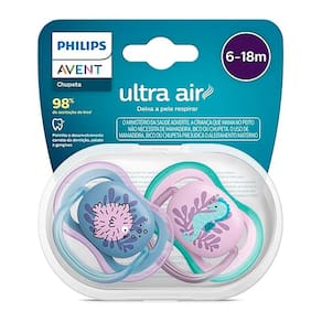 Kit 2 Chupetas Philips Avent Ultra Air 6-18m Ortodônticas - Deixa a Pele Respirar e Alta Aceitação Kit 2 Chupetas Philips Avent Ultra Air 6-18m: Máxima Respirabilidade e Conforto O Kit com 2 Chupetas