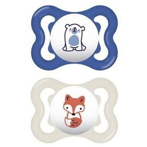 Chupeta Supreme - 0-6 meses Azul - Embalagem Dupla - MAM A Inovadora Chupeta Supreme da MAM foi especialmente projetada para reduzir o risco de desalinhamento dos dentes. Isso porque seu bico extrafino em Silicone SkinSoft, macio com superfície texturizada e sedosa, comprovadamente aceita por 94% das crianças é 60% mais fino e 4 vezes mais flexível que outras chupetas convencionais, permitindo o fechamento natural da boca.Perfeita para mostrar o sorriso mais bonito, a Chupeta Supreme também é superleve e confortável devido ao seu exclusivo disco extra ventilado delicado com a pele, especialmente desenhado para permitir a circulação do ar. Características:- Embalagem dupla: contém 2 duas unidades- Desenvolvida por especialistas da saúde- Silicone SkinSoft, macio com superfície texturizada e sedosa, comprovadamente aceita por 94% das crianças- Pesquisa de mercado 2010-2018, testado com 1.383 bebês.- Possui furos de ventilação para não irritar a pele sensível- Compatível com os prendedores de chupetas MAM- Acompanha estojo para esterilização e transporte- BPA/BPS free: Todos os produtos da MAM são feitos de materiais livres de BPA e BPS- Imagens meramente ilustrativas, as cores e estampas podem variar de acordo com o lote do fabricante CERTIFICAÇÃO: CE-PUR/IQB 000265 NBR 10334/2003 - OCP 006 O ministério da saúde adverte: a criança que mama no peito não necessita de mamadeira, bico ou chupeta. O uso de mamadeira, bico ou chupeta prejudica o aleitamento materno.