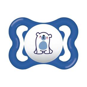 Chupeta Supreme - 0-6 meses Azul - Embalagem Dupla - MAM A Inovadora Chupeta Supreme da MAM foi especialmente projetada para reduzir o risco de desalinhamento dos dentes. Isso porque seu bico extrafino em Silicone SkinSoft, macio com superfície texturizada e sedosa, comprovadamente aceita por 94% das crianças é 60% mais fino e 4 vezes mais flexível que outras chupetas convencionais, permitindo o fechamento natural da boca. Perfeita para mostrar o sorriso mais bonito, a Chupeta Supreme também é superleve e confortável devido ao seu exclusivo disco extra ventilado delicado com a pele, especialmente desenhado para permitir a circulação do ar.