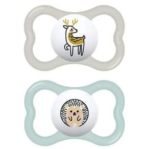 Características: - Embalagem dupla: contém 2 duas unidades - Desenvolvida por especialistas da saúde - Silicone SkinSoft, macio com superfície texturizada e sedosa, comprovadamente aceita por 94% das crianças - Pesquisa de mercado 2010-2018, testado com 1.383 bebês. - Possui furos de ventilação para não irritar a pele sensível - Compatível com os prendedores de chupetas MAM - Acompanha estojo para esterilização e transporte - BPA/BPS free: Todos os produtos da MAM são feitos de materiais livres de BPA e BPS - Imagens meramente ilustrativas, as cores e estampas podem variar de acordo com o lote do fabricante