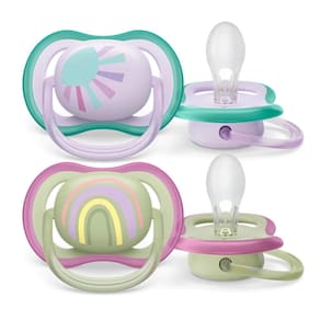 Uma chupeta leve e com aberturas de ar para a pele sensível do bebê. Grandes aberturas para permitir que a pele do bebê respire. Deixe a pele do seu bebê respirar com a Chupeta Philips Avent Ultra Air, que possui 4 grandes aberturas e um escudo leve desenhado para o o máximo de fluxo de ar, para que a pele do bebê continue seca enquanto usa a chupeta.