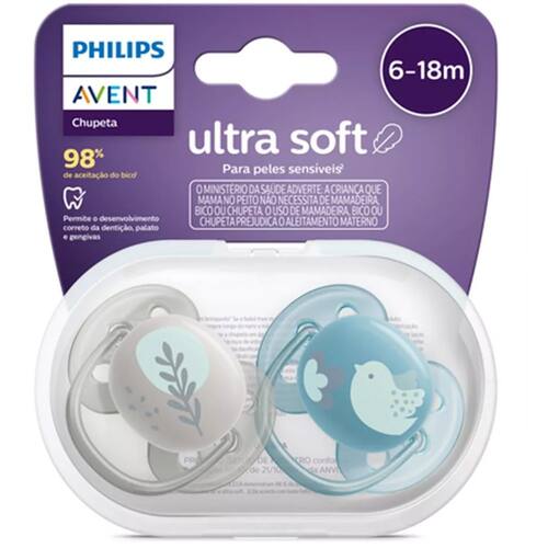 Momento importante na escolha da chupeta para o bebê, a busca por algo que não marque e irrite a pele do bebê e que bico seja bem flexível, as chupetas Ultra Soft da Philips Avent é a escolha perfeita. A pele delicada precisa de cuidado extra. A tecnologia da Philips Avent, chamada FlexiFit permite que esta proteção siga as curvas naturais do rosto do seu bebê para uma adaptação confortável, com isto o bebê terá menos marcas e irritação na pele. Proteção arredondada minimiza a pressão para um acalmar e sempre de forma confortável, por ficar de forma suave nas bochechas do seu bebe. A pele precisa de respirar, especialmente a do bebê, motivo este que a proteção do escudo tem 6 entradas de ar para um fluxo de ar adicional, concebida para reduzir a irritação da pele. Esterilização no microondas é fácil e segura, pois a caixinha além de transportar as chupetas, pode ser utilizada para esterilizar, indo direto no micro-ondas.
