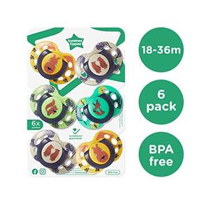 A ação instintiva de sugar ajuda a acalmar e acalmar os bebês e todos os pais sabem que não há nada mais maravilhoso do que um bebê calmo e contente. Então, quando você precisar transformar gritos e soluços em sorrisos e dormir, basta pegar uma chupeta Tommee Tippee Fun Style. Como o saco de silicone simétrico é totalmente reversível, não há lado "errado" para que a chupeta seja sempre colocada corretamente na boca do seu bebê, mesmo quando eles mesmos a colocam na boca. O escudo curvo fica confortavelmente entre o queixo e o nariz do bebê e os orifícios em cada lado permitem o fluxo de ar extra e evitam o acúmulo de umidade, o que ajuda a proteger a pele delicada do bebê contra irritação. O saco de silicone sem BPA é macio e flexível, além de ser robusto e durável. A superfície lisa do silicone é muito fácil de limpar e não absorve manchas e odores. Basta colocar um esterilizador, lavar à mão ou na máquina de lavar loiça. Recomendamos contra o uso prolongado de chupeta ao longo de 24 meses e parar o uso de chupeta quando seu filho tiver mais de 36 meses. *De um estudo independente em julho de 2021 com 416 mães com uma criança de 0 a 36 milhões, que atualmente estão usando uma chupeta Tommee Tippee: *99% das mães recomendariam uma chupeta Tommee Tippee *97% das mães dizem que uma chupeta Tommee Tippee ajudou a assentar o bebê *93% das mães dizem que os bebês amam sua chupeta Tommee Tippee *97,5% dos bebês aceitam uma chupeta Tommee Tippee Aviso! Não amarre a chupeta ao redor do pescoço da criança, pois apresenta um perigo de estrangulamento.