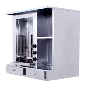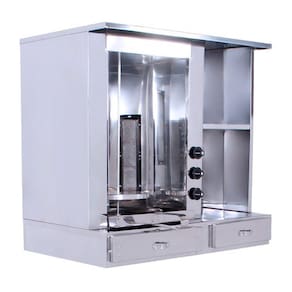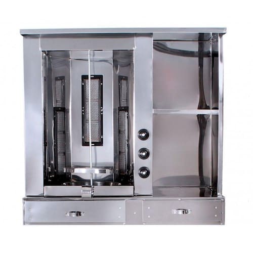 O Churrasco Grego ou Shawarma conta com balcão inteiro em aço inox suportando até 20kg de carne e 3 queimadores infra-vermelhos com até 2225 graus de caloria que possuem regulagem de chamas independente para cada queimador.