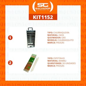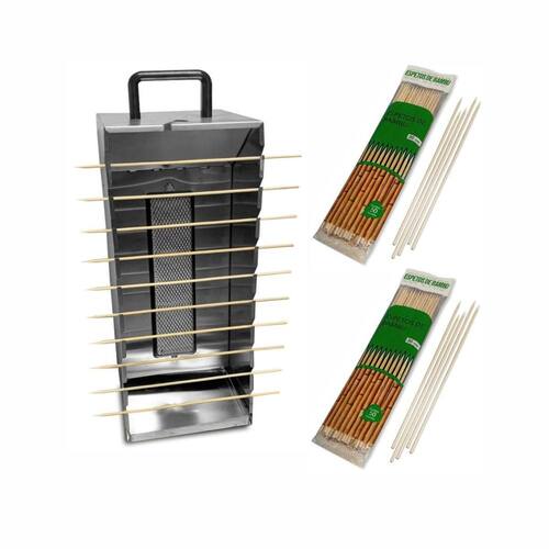 Componentes do KIT: - 1 Assador Churrasqueira Churrasquito Aço Inox a Gás PR-199 - Progás - 100 espetinhos de bambu 30 cm