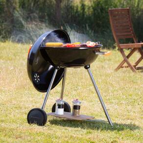 Explore o prazer de cozinhar ao ar livre com esta churrasqueira movel a bafo. Ideal para uso externo, ela e alimentada a carvao e garante um preparo uniforme dos alimentos. Com dimensoes de 96 cm de altura, 64 cm de largura e 63 cm de profundidade, este modelo e pratico e facil de movimentar gracas as rodas inclusas. A churrasqueira e feita de aco de alta qualidade na cor preta, oferecendo durabilidade e resistencia as intemperies. Acompanha uma tampa de metal, tambem em aco, que ajuda a manter o calor, permitindo que os alimentos cozinhem lentamente e absorvam todo o sabor do churrasco. A grelha de aco tem um diametro de 45 cm, ideal para grelhar diferentes tipos de carnes e vegetais. Este produto vem desmontado, com instrucoes claras para uma montagem simples e rapida. Alem disso, possui uma garantia de 12 meses do fabricante. Transforme seus encontros ao ar livre com esta churrasqueira eficiente e facil de usar.