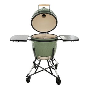 Explore o prazer de cozinhar ao ar livre com esta churrasqueira a carvao portatil, ideal para uso externo. Com uma estrutura robusta de aco e ceramica, este modelo Drago Green Diam apresenta uma cor verde vibrante que se destaca em qualquer ambiente. A churrasqueira possui tres queimadores, garantindo uma distribuicao uniforme do calor, e vem com uma tampa tambem na tonalidade verde, que ajuda a manter a temperatura ideal para assar seus alimentos a perfeicao.
