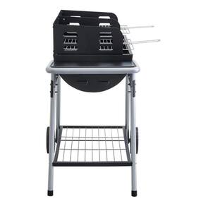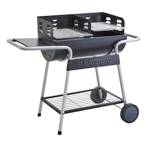 Ideal para quem busca praticidade e eficiencia em churrascos ao ar livre, esta churrasqueira a carvao portatil e a escolha perfeita para reunir amigos e familia. Com duas grelhas robustas de aco, garante uma distribuicao uniforme do calor, proporcionando um cozimento perfeito. Sua estrutura em aco na cor preta oferece durabilidade e resistencia as condicoes externas. Possui duas rodas que facilitam a mobilidade, permitindo que voce a mova com facilidade para qualquer lugar. O modelo desmontavel vem acompanhado de instrucoes claras para montagem, tornando o processo simples e rapido. Com alcas integradas, o transporte se torna seguro e confortavel. A churrasqueira tem dimensoes de 92 cm de altura, 61,5 cm de largura e profundidade, pesando apenas 14,96 Kg, ideal para uso externo sem ocupar muito espaco. Este produto e uma excelente opcao para quem valoriza qualidade e praticidade em momentos de lazer.