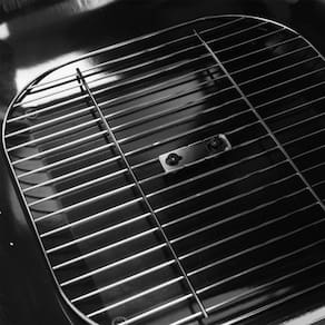 Esta churrasqueira vem equipada com duas rodas macicas de plastico, facilitando a movimentacao em diferentes superficies sem a necessidade de levanta-la. A seguranca e reforcada com alcas externas de metal, permitindo um manuseio confortavel e seguro. A grelha de aco, medindo 52 cm de largura por 53 cm de comprimento, permite cozinhar uma boa quantidade de alimentos simultaneamente.