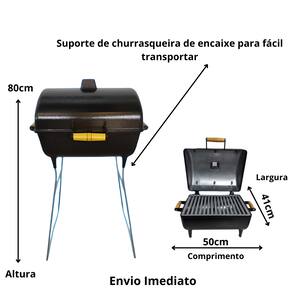 Comprimento 50 cm x 41 cm larguraGrelha: comprimento 38 cm / largura 30 cm /  Possui Grelha dupla face um lado lisa e outro Parrilha.