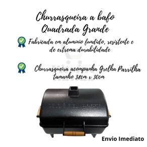 Churrasqueira a Bafo gourmet com grelha Pé alta Carvão Gold As Churrasqueiras em aluminio Fundido Especialmente desenvolvidas para seu churrasco entre família e amigos. Com um tamanho proporcional, podendo leva-lá para qualquer lugar desejado, além poder ser Utilizado aberta ou fechada. fabricada em alumínio fundido resistente e de extrema durabilidade, possui um tratamento especial, deixando-a com brilho de alta autenticidade. Medidas : Comprimento 50 cm x 41 cm largura Grelha: comprimento 38 cm / largura 30 cm / Possui Grelha dupla face um lado lisa e outro Parrilha. Suporte pés 59,50 cm Profundidade para Carvão 31 cm Itens na compra : 1un Churrasqueira A Bafo Quadrada Em Aluminio com 1 un grelha e Suporte pés Marca: Não Informado Ean: 7896944641736