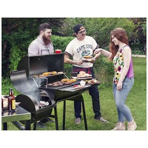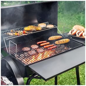 O defumador offset está firmemente preso à grelha para garantir uma boa circulação de calor e fumaça. Porta lateral fácil de abrir para adicionar carvão e remover cinzas saída de ar atiça o fogo instantaneamente.