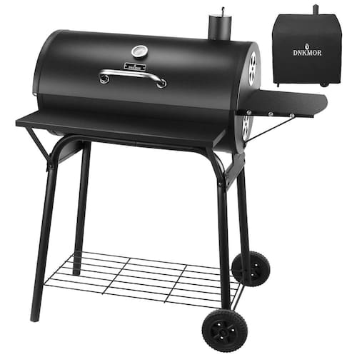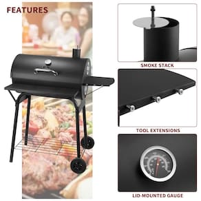 Fácil de Mover e Com Mesa Lateral: A churrasqueira externa possui duas rodas e uma alça lateral, permitindo que você mova sua churrasqueira com facilidade para onde precisar. Mesa lateral grande oferece mais espaço para colocar temperos e preparar 3 ganchos na mesa lateral ajudam a organizar os acessórios a prateleira inferior oferece espaço de zenamento adicional para grandes ferramentas de grelhar Marca: Não Informado