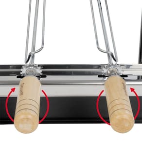 - Compatível com espetos giratórios em aço cromado: garante a distribuição uniforme do calor;