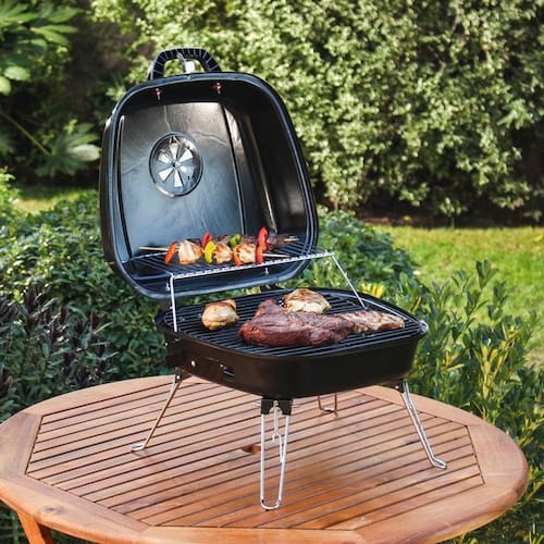 CARACTERÍSTICAS: Tem Pernas Dobráveis, Acompanha 2 Grelhas. Possui Tampa.