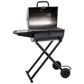 Grade a Carvão Portátil: Uma churrasqueira a carvão estilo barril construída para grelhar em casa e em qualquer lugar.