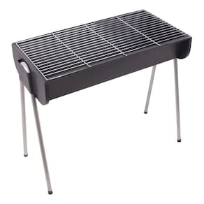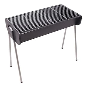 Resumo das Caracteristicas e Especificacoes: Churrasqueira a carvao de aco, cor preta, com dimensoes de 62x31x54 cm. Facil de montar. Area de coccao de 62x31 cm. Nao possui rodas. Vem com uma grelha inclusa. Garantia de 3 meses. Produto de origem chinesa. Peso bruto de 2,6 Kg."
