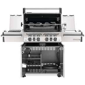 80.000 BTUs, 4 queimadores principais de aço inoxidável e área total de cozimento de 900 pol Botões de controle de luz noturna Led Spectrum com recurso de segurança Queimador lateral da zona de chiado infravermelho Tampa superior do rolo de facilidade de elevação Queimador de rotisserie traseiro infravermelho Marca: Não Informado